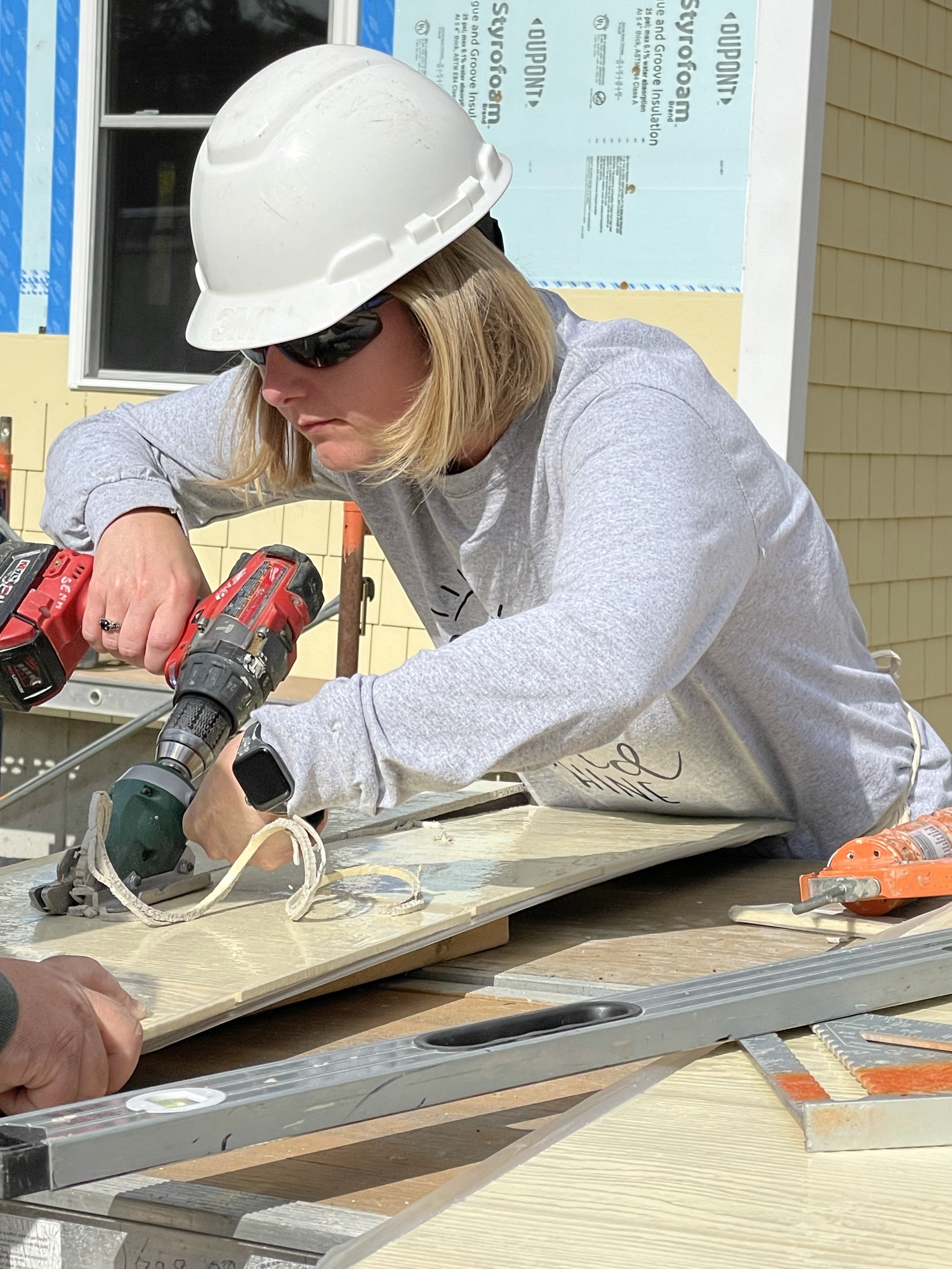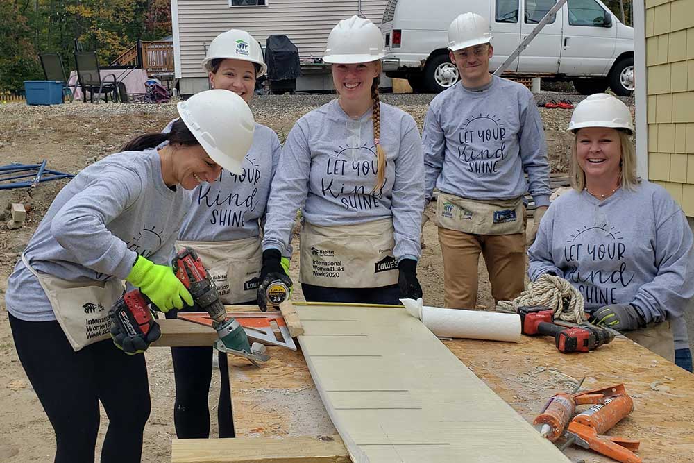 On a brisk morning that turned into a warm, sunny fall day, members of the Leone, McDonnell & Roberts team put their calculators aside, put on their hardhats and readied themselves for a day of service at Southeast New Hampshire Habitat for Humanity.