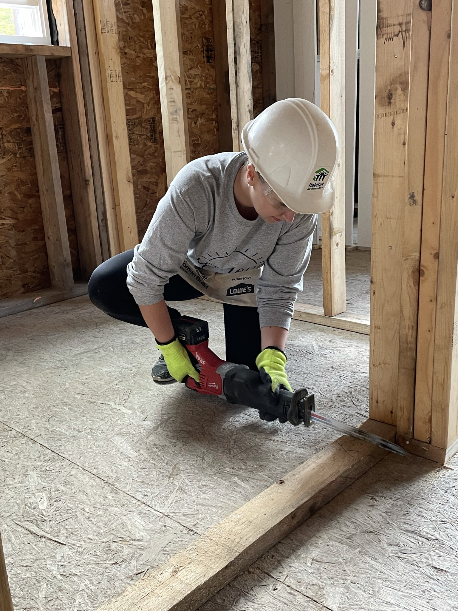 The team measured, cut and installed siding, took down and reassembled staging, routed lumber for making picnic tables (which will be sold in the organization’s retail store ReStore), moved debris from the site, and cleared out the inside of the house, preparing it for electrical work. Covered in sawdust and caulking, LMR team members worked side-by-side until the late afternoon.